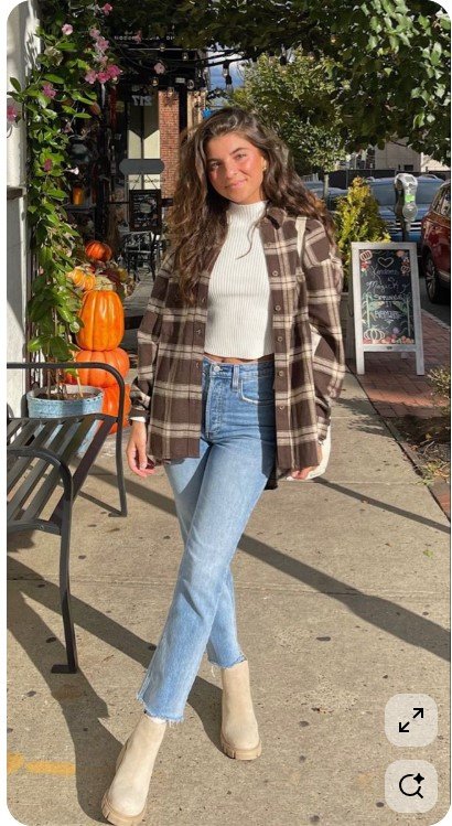 32. Straight Leg Jeans with Layered Tops, and Chunky Boots